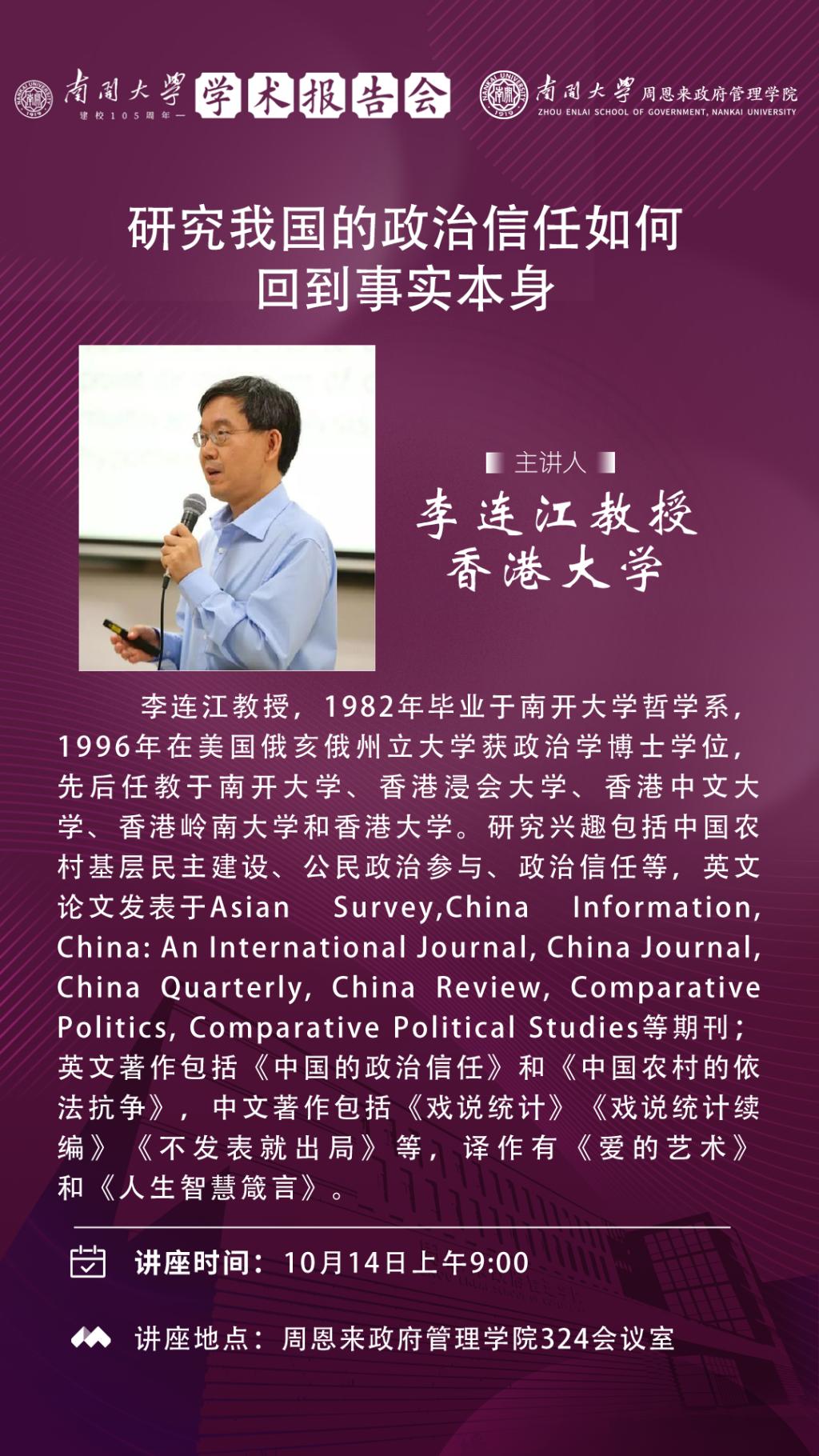 英国365集团建校105周年学术报告会|李连江:研究我国的政治信任如何回到事实本身