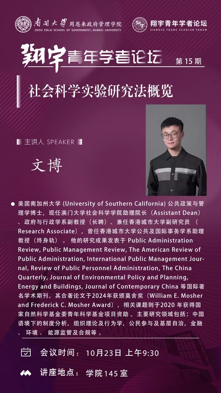 翔宇青年学者论坛第15期|文博:社会科学实验研究法概览