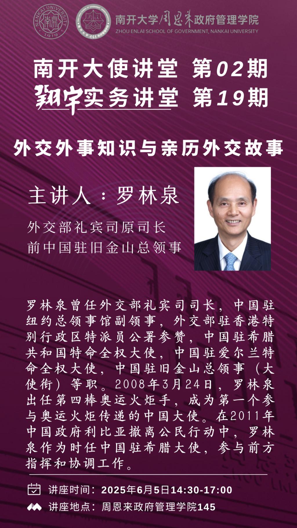 南开大使讲堂第02期、翔宇实务讲堂第19期|外交外事知识与亲历外交故事