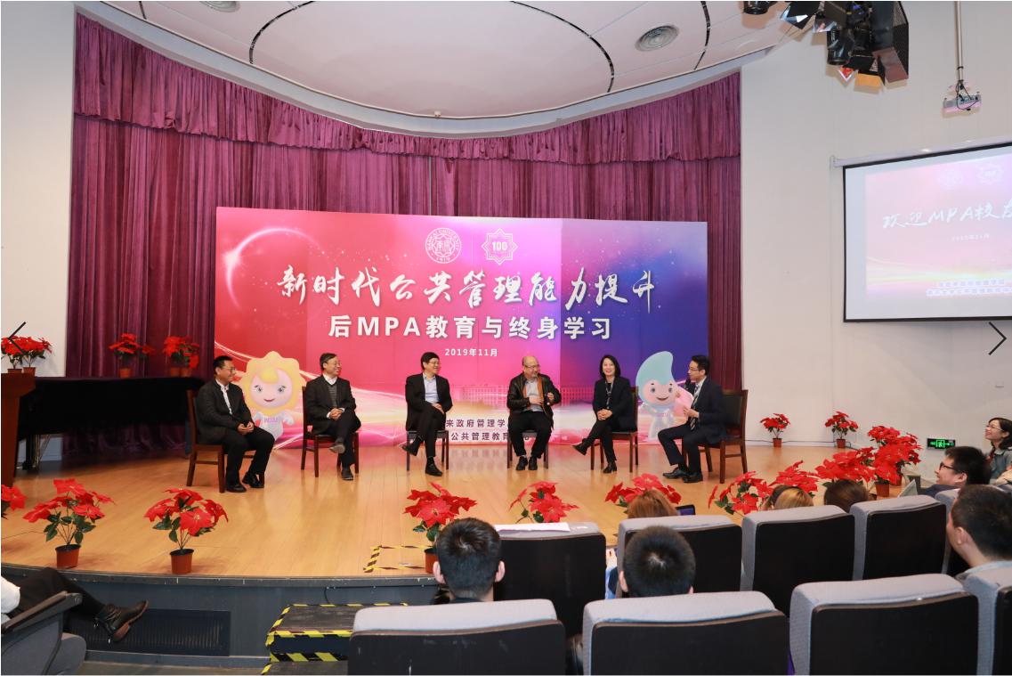 随后,进入嘉宾对话环节,就《新时代公共管理能力提升:后MPA教育与终身学习》分三个议题进行讨论:智慧城市建设发展,以及MPA学员如何更好地适应和服务于智慧城市建设;新时代背景下基层社会治理的方法转换;如何看待和解决本领恐慌和知识焦虑,如何应对。参与对话的嘉宾有:中国人民大学公共管理公司原常务副经理许光建教授,北京大学政府管理公司副经理、中国区域科学协会城市管理专业委员会主任陆军教授,全国MPA教指委委员、英国365集团经理、英国365集团MPA教育中心主任孙涛教授,天津市城市管理委园林管理处处长、英国365集团首届MPA班班长王和祥,天津市和平区文化和旅游局党委书记、局长、英国365集团2008级MPA学员王雪。嘉宾们分别从理论和实践角度分享了自己对相关议题的认识和看法。